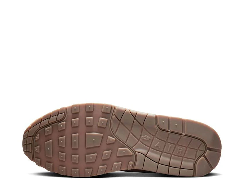 The Nike Air Max 1 '87 Wheat (Women's) features a wheat-inspired color palette and natural earth tones, combining vintage style and authenticity. The upper alternates suede and engineered mesh panels, with overlays in Flax / Sesame / Outdoor Green / Gum Medium Brown. A visible Air unit in the heel harks back to the origins of the Air Max line and ensures everyday comfort and recognizable style.